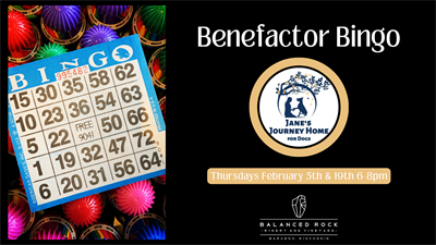 Benefactor Bingo at Balanced Rock Winery - Jane's Journey Home for Dogs