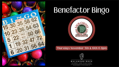 Benefactor Bingo at Balanced Rock Winery - Sauk County Historical Society
