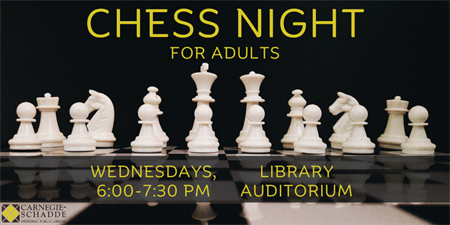 The Library's Chess Night for Adults is a weekly space to drop in and play chess. Bring your own chess set or use one of the library’s. All experience levels welcome!
