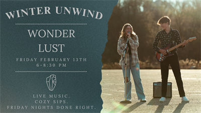 Join us one Friday a month this winter for Winter Unwind?an evening of live music, warm vibes, and your favorite drinks. Settle in, sip something cozy, and ease into the weekend the right way.
